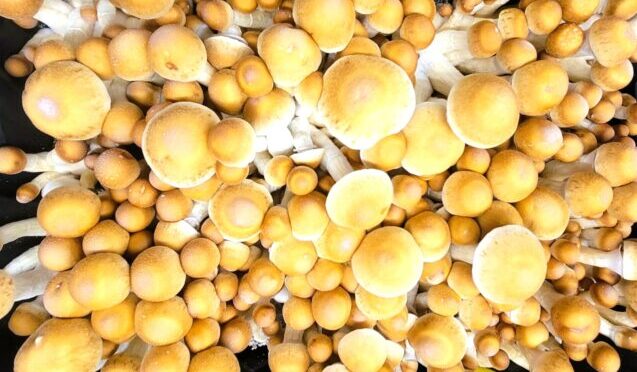 The Hillbilly Pumpkin strain is characterized by its large, darkish, brown-colored mushrooms, with a distinctive pumpkin-like ribbing that makes them stand out in any collection. These “pumpkin” mushrooms are not only visually striking but are also known for their robust growth, producing monster fruits the size of softballs.